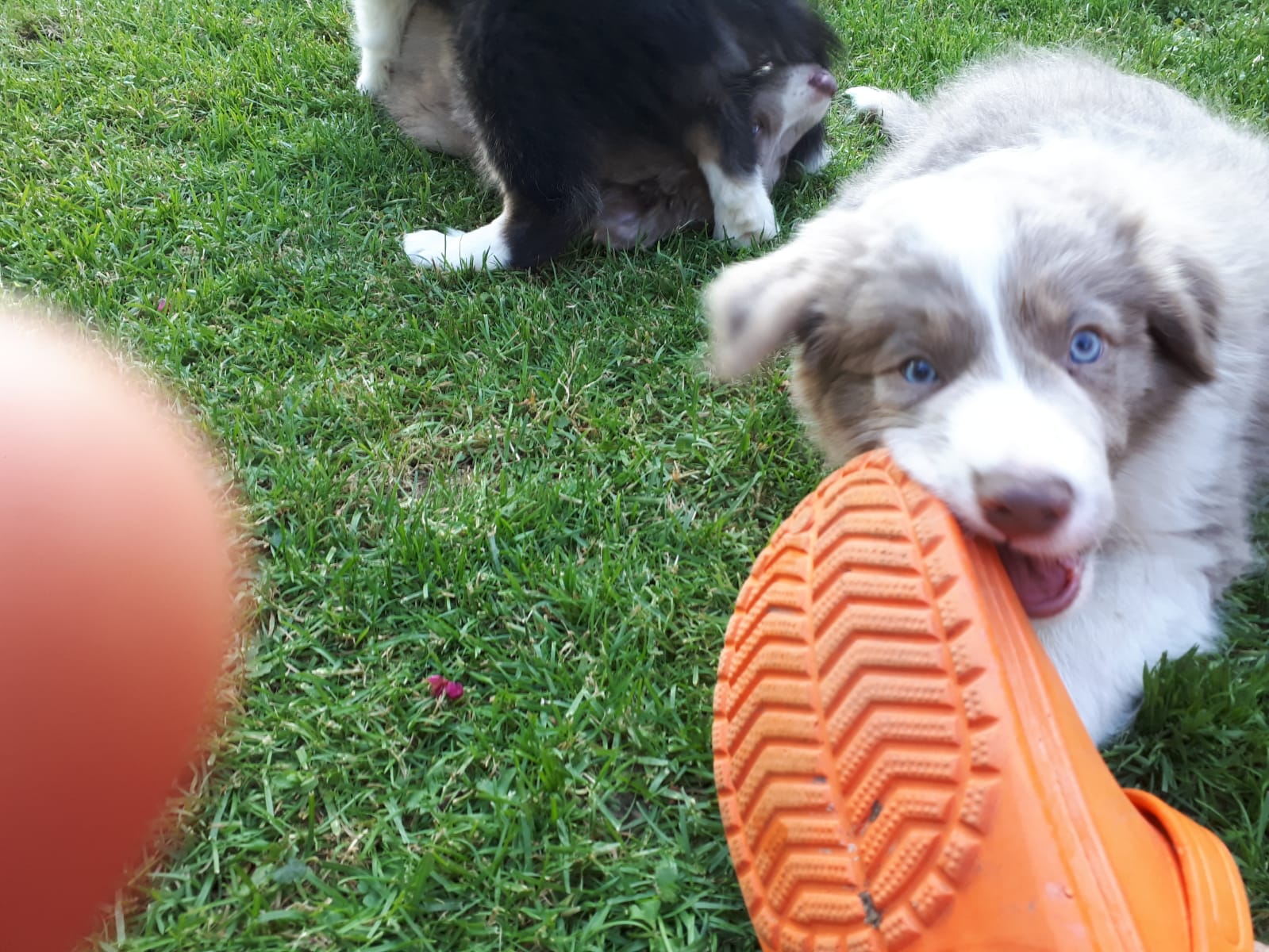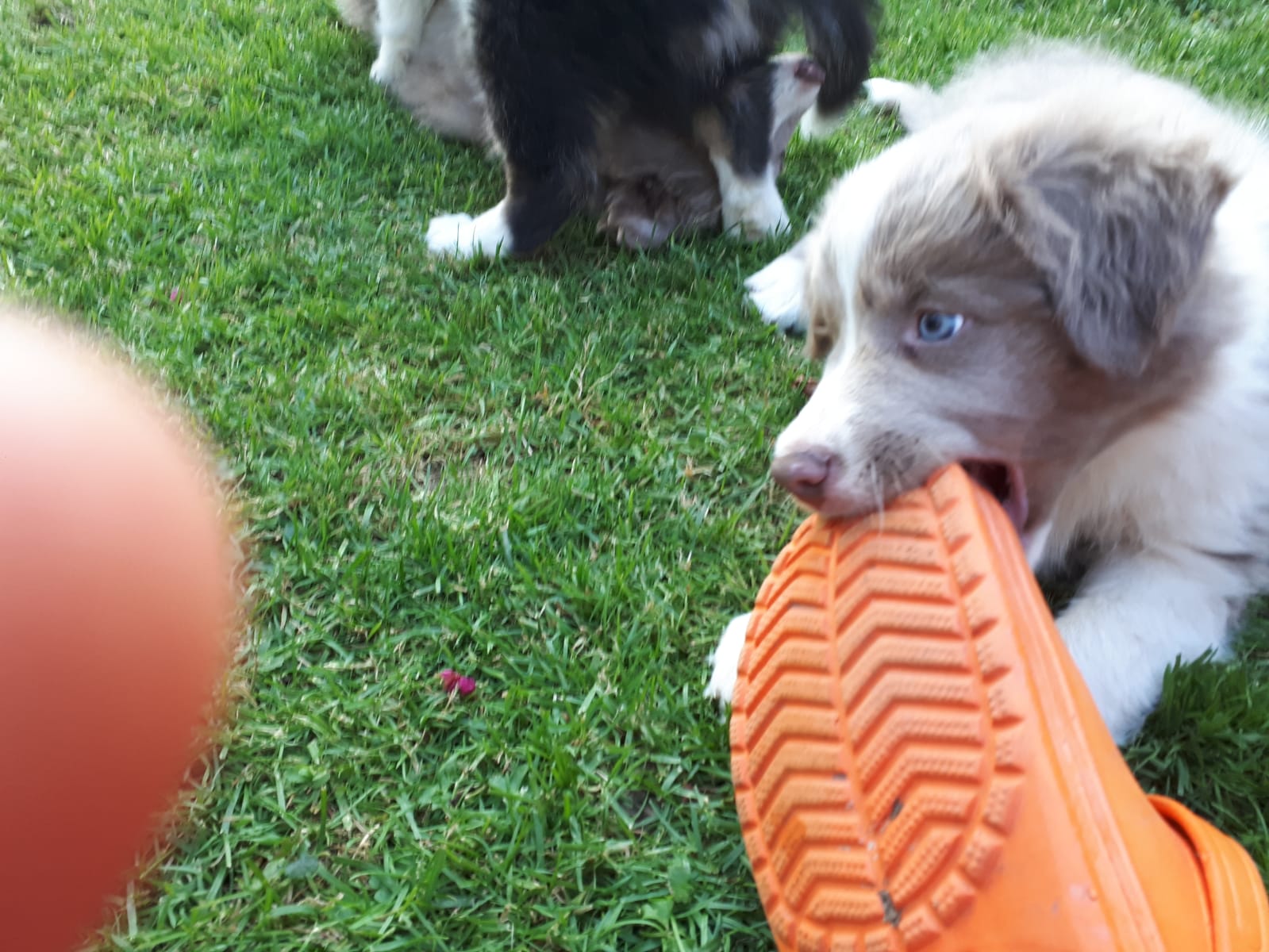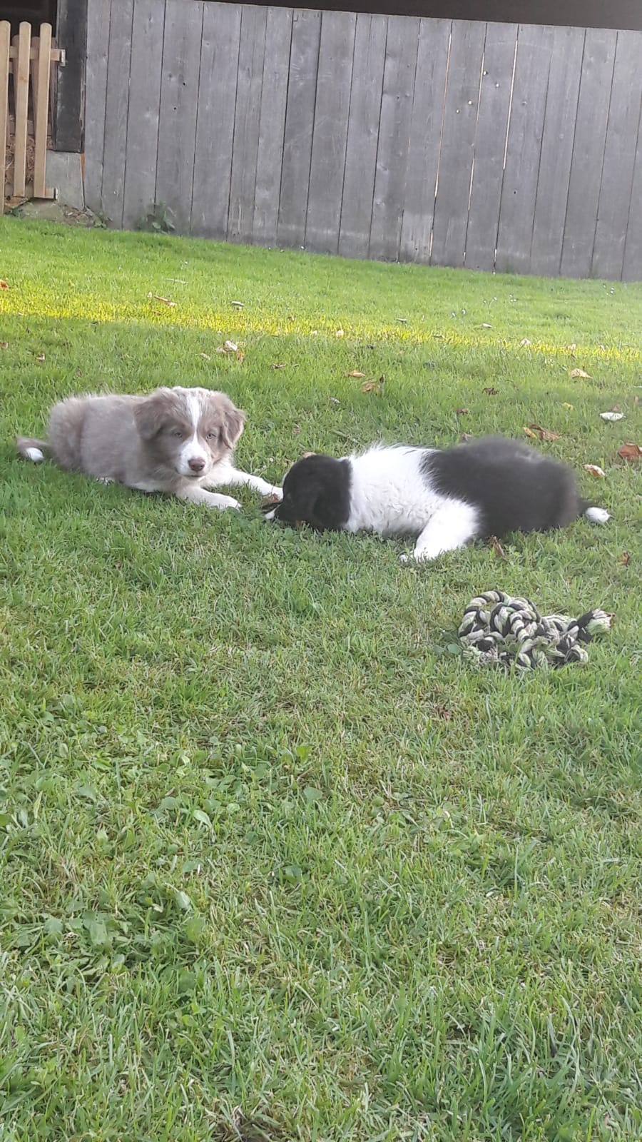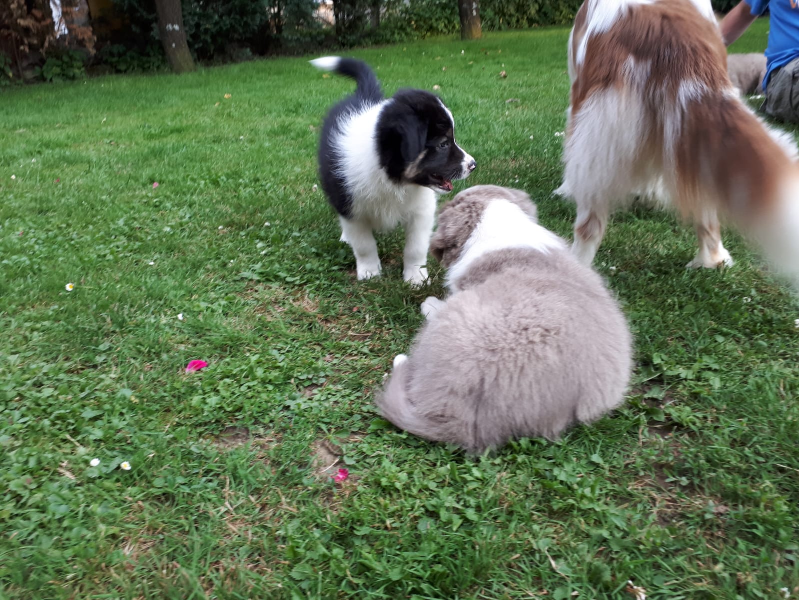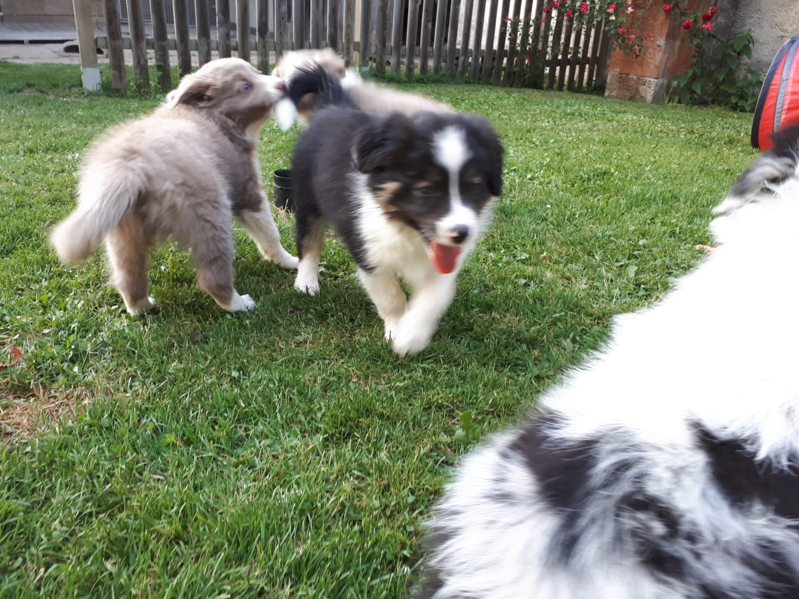 Die Rasselbande besteht aus 4 Rüden Dorano, Don, Dusty und Duke, sowie einer Hündin namens Dana. Die Burschen sind schwarz-weiss, tricolor, lilac-weiss und black-merle; die Hündin ist lilac-weiss (feinere weisse Maske im Gegensatz zum lilac-Rüden).